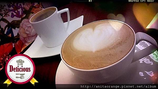後決定點我最愛的焦糖蘋果派~~北鼻點了熔岩巧克力~~另外我們再點了二杯咖啡~~上去享受