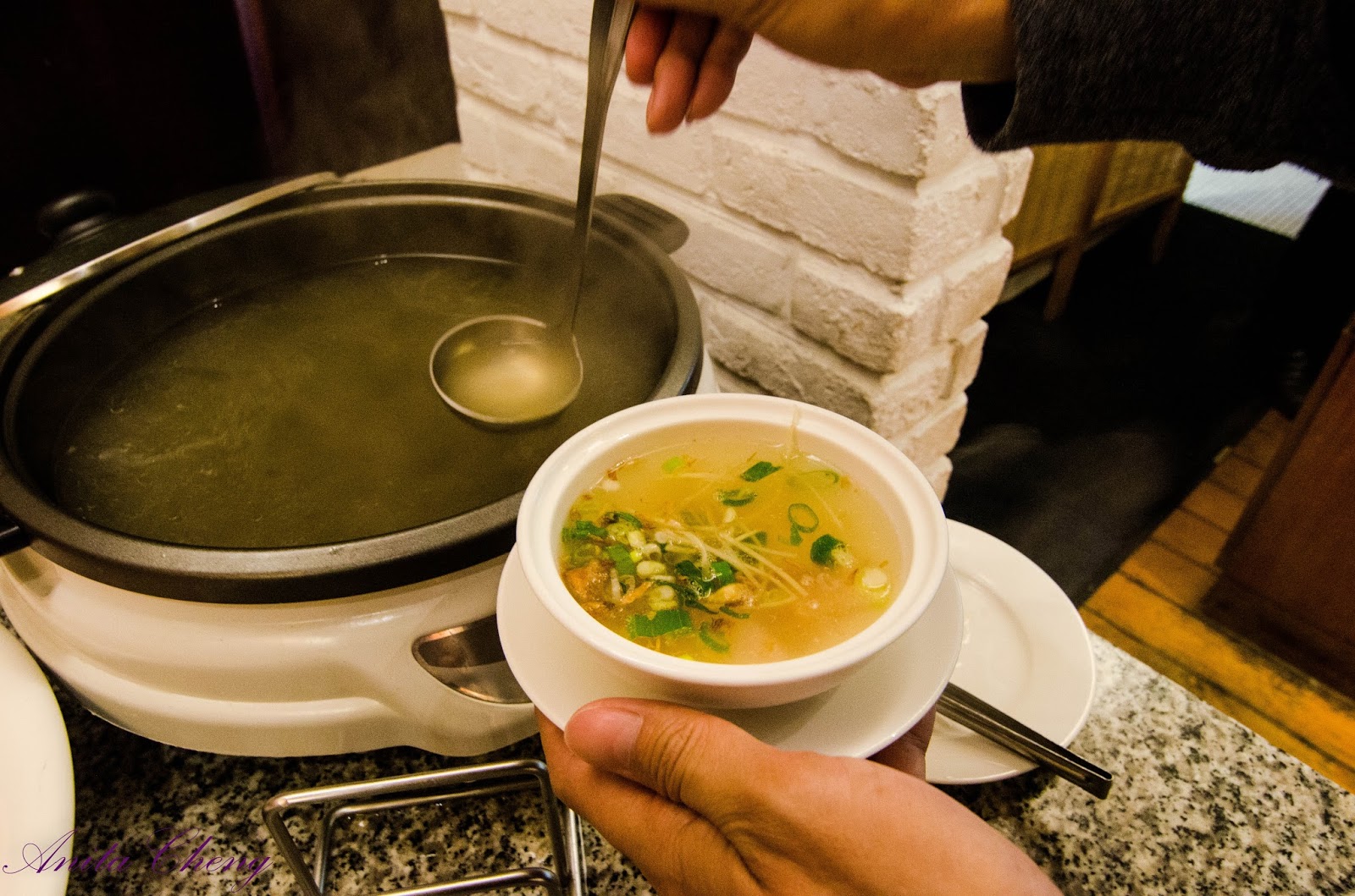 首先依自己喜愛的配料放到碗裡面去~再來準備淋上熱騰騰的湯汁嘍~~